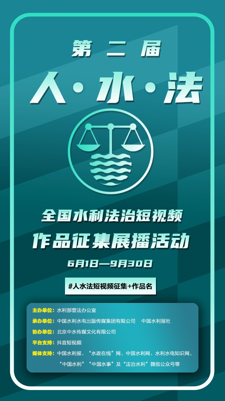 水電知識(shí)網(wǎng)»資訊»出版?zhèn)髅劫Y訊»第二屆“人·水·法”全國(guó)水利法治短視頻作品征集展播活動(dòng)正式啟動(dòng)