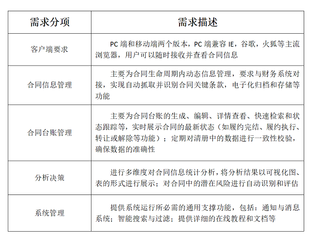 經(jīng)濟(jì)合同管理系統(tǒng)充分利用現(xiàn)代企業(yè)的先進(jìn)管理思想和互聯(lián)網(wǎng)信息技術(shù),定位為全方位、系統(tǒng)化的合同管理平臺(tái)。系統(tǒng)功能涵蓋合同的存儲(chǔ)和檢索、審批流程管理、合同臺(tái)賬管理、提醒和通知、合同風(fēng)險(xiǎn)管理等多個(gè)業(yè)務(wù)方向。
