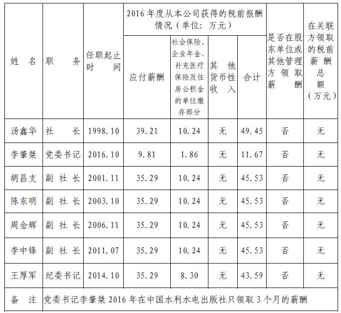 水電知識網»資訊»出版傳媒資訊»中國水利水電出版社負責人2016年度薪酬情況公告