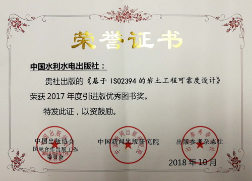 近日,2017年度(第十七屆)輸出版引進(jìn)版優(yōu)秀圖書推介活動(dòng)評(píng)選結(jié)果公布,我社《基于ISO 2394的巖土工程可靠度設(shè)計(jì)》(責(zé)任編輯:朱雙林、王菲)獲2017年度引進(jìn)版優(yōu)秀圖書獎(jiǎng)。