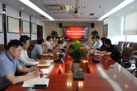 與黃河水利職業技術學院座談交流現場 2019年5月17日上午,黃河水利職業技術學院黨委書記許琰、副院長焦愛萍等一行4人來我集團調研。集團董事長、黨委書記涂曙明,總經理、社長營